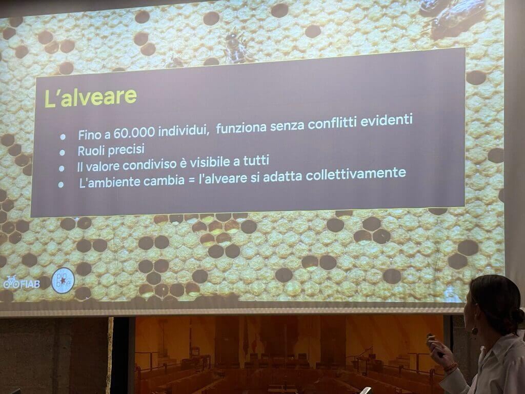 Come si è detto nel corso dell’incontro bisogna “costruire comunità che durano” e si è fatto l’esempio di un alveare, comunità che riunisce decine di migliaia di individui (api), ciascuno con un ruolo preciso e una grande capacità di adattarsi collettivamente a un ambiente che cambia. L’ambiente che cambia, per un’associazione, è la città in cui opera, con i suoi miglioramenti o peggioramenti dal punto di vista delle politiche ciclabili.