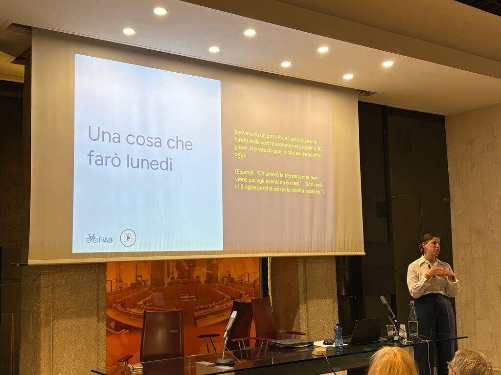 Siamo a Perugia, dove si è appena conclusa la prima giornata dell’Assemblea Nazionale FIAB. Come attività di benvenuto, organizzata dalla consulente Michela Grasso di Pin Bike, nella Sala della Partecipazione di Palazzo Cesaroni i rappresentanti delle tantissime associazioni locali hanno animato un workshop dedicato a tecniche, strumenti e piattaforme per l’attivazione dei volontari e il coinvolgimento degli stakeholder. Come si attraggono dunque nuovi volontari? Come si allarga una comunità che da oltre 30 anni è impegnata per rendere l’Italia un Paese ciclabile?