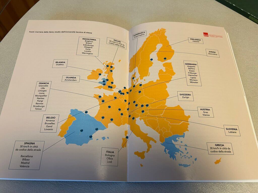 Torniamo ad Andrea Colombo, autore di Città 30: l’altra velocità (edito da Intermezzi editore). Nel volume è presente una cartina eloquente dell’Europa che mostra tutti i comuni che hanno adottato queste misure visionarie: da oltre dieci anni a oggi molto è stato fatto e il Vecchio continente si dimostra un laboratorio urbano per le migliori politiche sulla mobilità attiva. Con questo libro Colombo punta però ad allargare la platea.